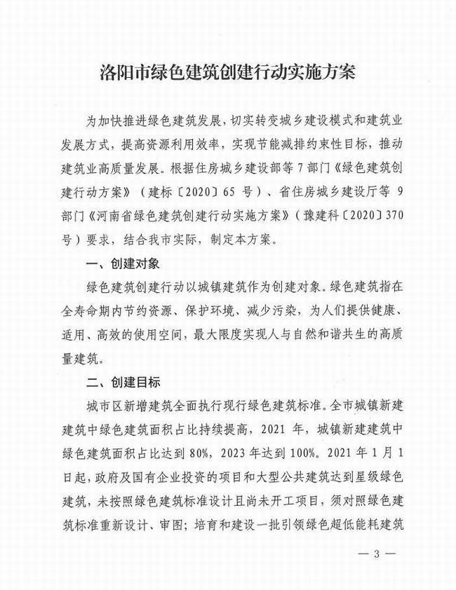 關(guān)于印發(fā)洛陽(yáng)市綠色建筑創(chuàng)建行動(dòng)實(shí)施方案的通知